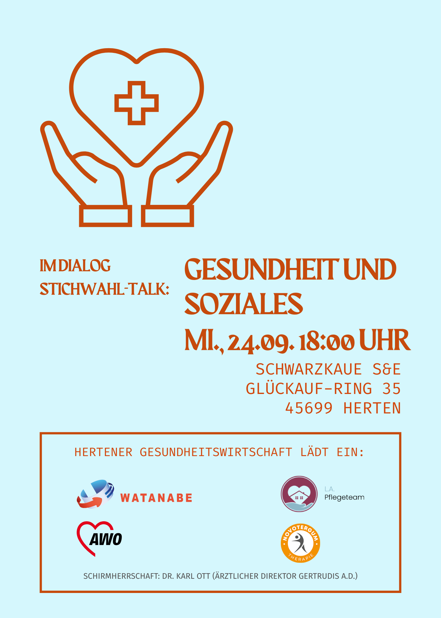 Die Hertener Gesundheitswirtschaft lädt zum Stichwahl-Talk „Gesundheit und Soziales“ ein! Am 24.09. freue ich mich über alle, die vorbeikommen, Fragen stellen, ihre Anliegen einbringen und mit mir ins Gespräch kommen wollen. Ich bitte bei der Stichwahl am 29.09. um Ihr Vertrauen. Es geht darum, die Zukunftsfragen unserer Stadt mutig anzugehen und Herten Schritt für Schritt […]
